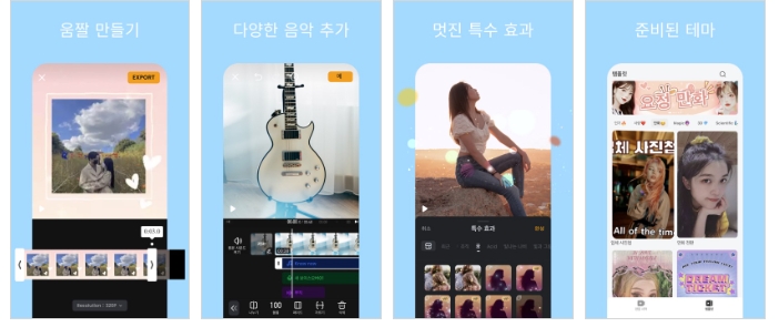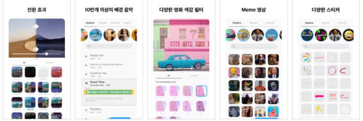 - [테마] 설날, 로맨스, 가족, 생일, 브이로그, 졸업, 레트로, 문학, 여행, 패션 등 다양한 스타일의 테마 제공