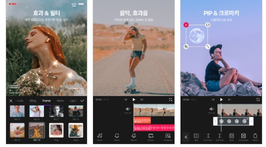 + PIP 기능으로 영상 위에 영상이나 사진, GIF를 올리세요. 많은 사용자분들이 요청하셨던 크로마키 기능이 컷 편집과 PIP에 추가되어 좀 더 다양한 연출이 가능해졌습니다.