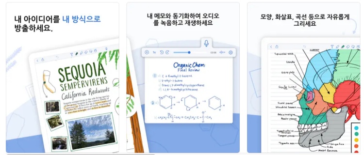 | 노타빌리티 | 식 변환 기능, 그래프 기능 좋음 (공대생, 경제학과 등 수식 많이 사용하는 학생 추천) 녹음 기능 지원 |
