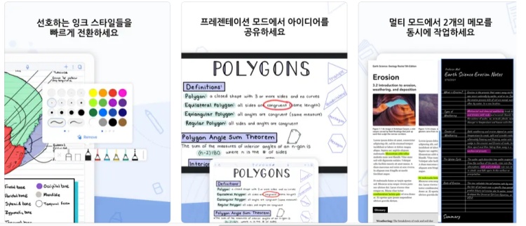 필기감 다소 좋지 않음 | 무료 버전 : 일부 기능 제한 유료 버전 : 11,000원 |