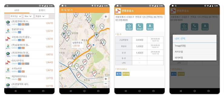 * 거리순, 최저가 순으로 정렬을 하여 한눈에 필요한 주유소를 파악 할 수 있습니다.