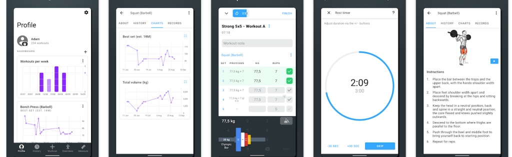 Strong은 Starting Strength, StrongLifts 5x5 같은 진보적인 바벨 루틴에 최적화되어 있지만, 사용자가 선택한 다른 루틴에도 쉽게 적용할 수 있습니다!