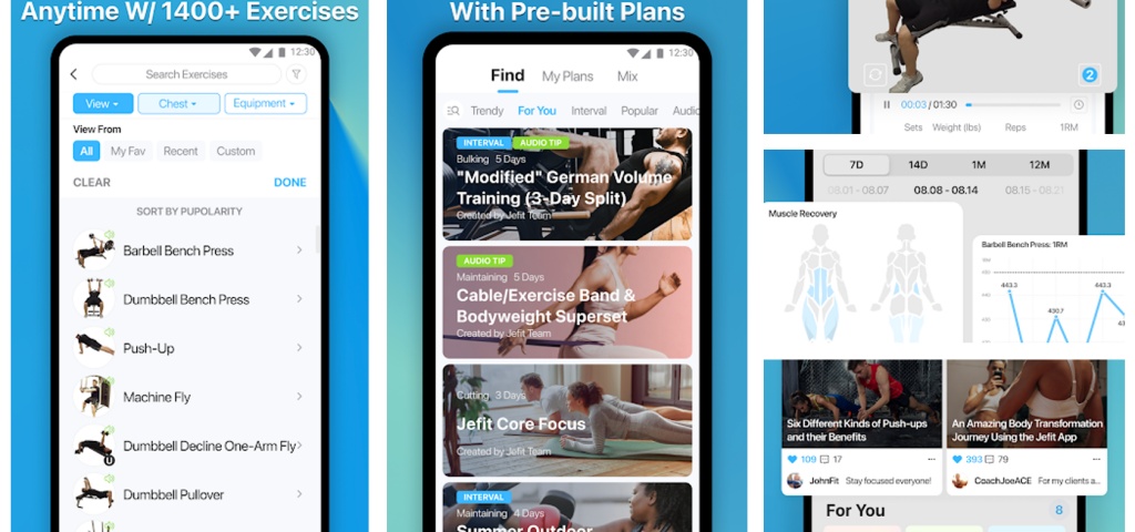 JEFIT 체육관 일지를 사용하여 운동 트레이닝 운동을 쉽게 추적합니다. 보디빌딩, 3일 분할, 5x5 & 체력관리 프로그램, 그리고 홈 운동과 웨이트리프팅을 위한 프로그램입니다.