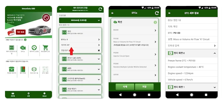 3) 오류를 읽고 레셋하세요. Car Scanner이 오류 해석의 광범위한 데이터 베이스를 포함합니다.