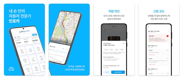 • 인포카 앱은 국제 표준 OBD2 Protocol기반의 범용성 단말기를 지원합니다. 단, 인포카 앱은 자사 단말기에 최적으로 개발 되었으며, 타사 제품 사용 시 일부 기능에 제한이 있습니다.