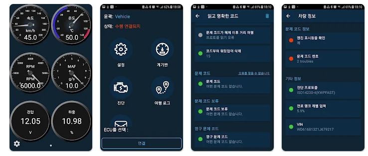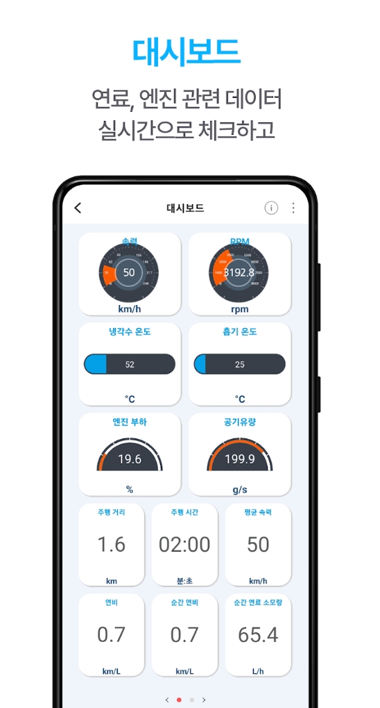 실시간으로 귀하 차량 작동 파라미터를 체크하시고, 오류, 정지 이미지를 레셋하시고 ECU 진단 결과를 보시고, 차량 가속을 측정하고 연비 통계 등을 관리하세요:
